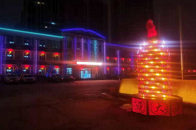 1月20日以来,物业公司工作人员放弃休息日,加班加点,无惧大雪纷飞,为办公区大门、办公楼外墙挂上了大红灯笼,为栅栏、文化墙、办公区及家属院内树木枝条披上了五颜六色的彩灯,夜幕降临,流光溢彩,璀璨夺目,特别是大门口的焰火,寓意来年的生活旺气冲天,红红火火。华灯初上,火红的灯笼、闪耀的彩灯,与城市万家灯火融为一体,让单位夜景充满了浓厚的年味儿。