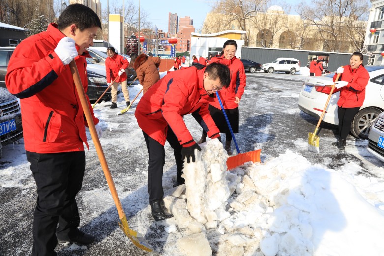 面对此次强降雪天气,公司党委书记、董事长赵政当先锋、作表率,全体班子成员发挥模范带头作用,带领干部职工在办公区、大门口、家属院等重点区域有序地开展铲雪除冰任务。大家不畏寒冷、手握铁锹、雪铲、扫把等工具,清雪除冰、集中堆放、集中清运,寒风抵挡不住热情,个个干劲十足,呈现出一派热火朝天的扫雪场景。经过多天连续奋战,用实际行动扫出了一条“平安路”,创造了一个畅通安全的出行环境。
