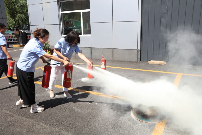 在消防演练中,安委办成员在胡英杰老师的指导下组织员工进行了火灾逃生演练及灭火演习,让大家掌握了正确的逃生方法,现场讲解演习灭火器的正确使用方法,增强了员工们的自救能力。演练结束后,李会萍书记对本次活动进行了总结,对胡老师的讲授给予了高度肯定,并针对日常消防安全及演练中的问题提出了建议。