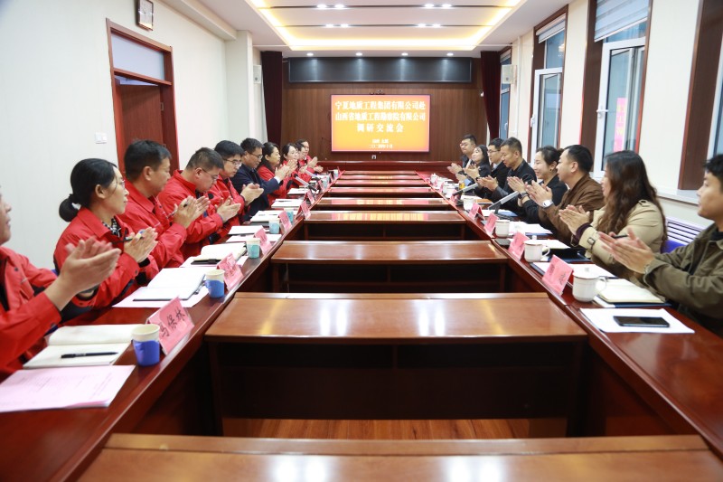 会上,施红政对宁夏地质工程集团有限公司一行的到来表示欢迎,并从历史沿革、业务范围、组织架构、资质建设、生产经营及重点项目等方面介绍了公司基本情况,他表示要以此次交流为契机,充分发挥各自在资源平台、人才培养等方面的优势,进一步拓宽经营理念、拓展业务市场,推动全方位合作。陈民指出此次来访以学习交流为主要目的,两家单位在历史沿袭、改革发展等方面有相似特征,希望可以搭建沟通平台,携手共谋发展,并介绍了宁夏地质工程集团有限公司的发展历程、人员构成、主营板块、规模现状等基本情况;与会人员共同观看了《地勘院有限公司宣传片》和《宁夏地质工程集团有限公司宣传片》。
