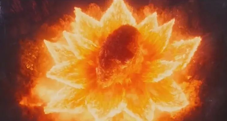 电影中,哪吒动用强大的三昧真火将石矶娘娘身体大部分熔化,只剩下几个小石块。