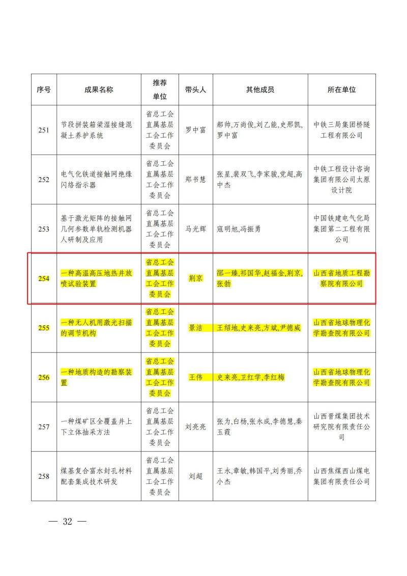 近日,山西省总工会公布了2025年全省“五小”创新大赛优秀成果和先进集体名单。FH开户自主研发的发明专利“一种高温高压地热井放喷实验装置”,荣获创新大赛二等奖。